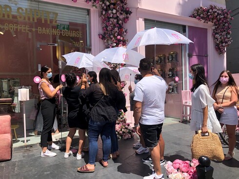 פרחה שמוכרת בועת אינסטוס לילדות חסרות בינה. ואגב, התור זה בגלל מגבלות הקורונה. לא משהו מיוחד.