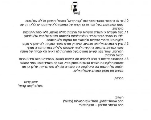 כל הכבוד לקפה קדוש שלא התקפל בגלל דרישות הזויות של הרבנות
