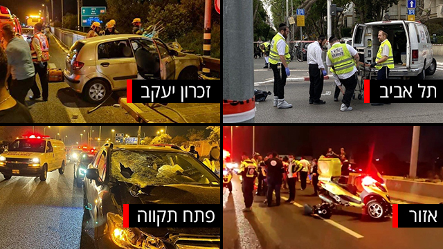 יממה קטלנית בכבישי ישראל: שני רוכבי אופנוע והולך רגל נהרגו אמש בתאונות ליד אזור ופתח תקווה, שאירעו כמעט באותו זמן. הלילה התנגש רכב בגדר שבשוליים של כביש 4, והנהג נהרג. עוד ארבעה נפצעו בתאונה ליד זכרון יעקב, בהם שלושה במצב קשה. הבוקר: רוכב קורקינט נהרג במרכז ת"א