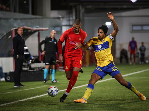 46': עידן דהן קיבל כדור בתוך הרחבה אבל לא הצליח להשתלט עליו, טננבאום הדף.